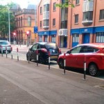 Yesterday: bollards still on the wrong side, unlawful parking still forcing people on bicycles against one-way flow https://t.co/kr4CJZBL8D pic.twitter.com/tXI6RsjgEl