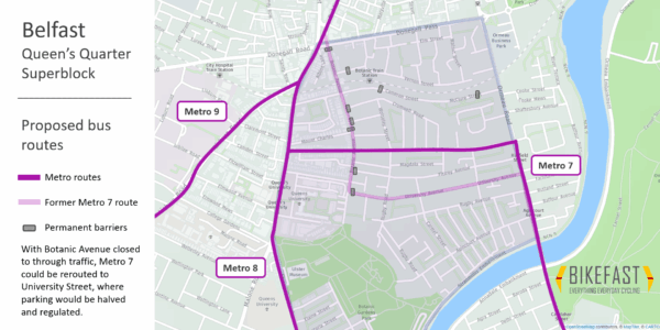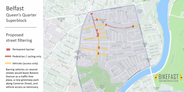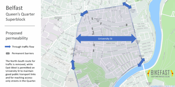 The term has been used to describe work to reduce traffic levels within areas of Barcelona, and Bikefast has proposed a superblock-style approach to re-configuring Belfast’s Linen Quarter.