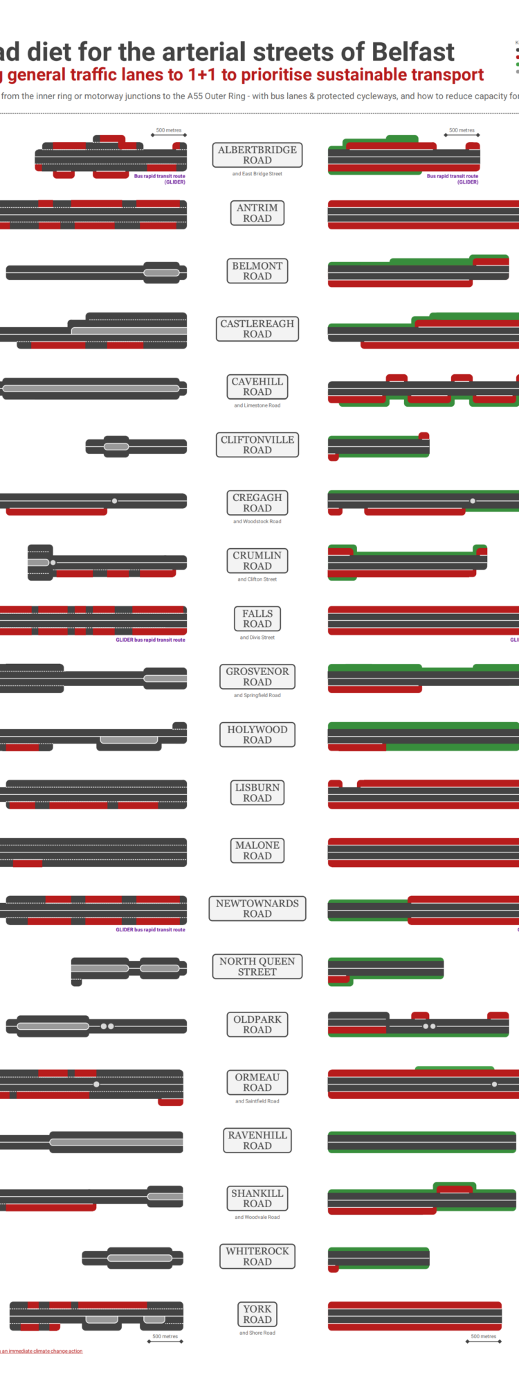 We’re barrelling towards a climate crisis and as far as managing travel habits in Belfast it’s business as usual in the places which matter. A city-wide road diet needs to happen within the next two years if Belfast is to make a genuine mark on climate breakdown. The current scramble among political parties to position themselves at the forefront of the ‘green agenda’ will be tested when faced with having to advocate and implement schemes such as this which will have a detrimental impact upon existing damaging habits. So who’s been green washing and who is for real? Over to you.
