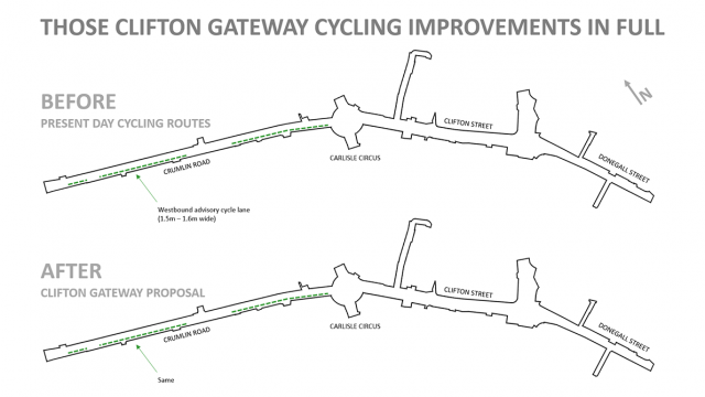 The brutal truth is, the Clifton Gateway plans deliver nothing for cycling. Based on the plans being consulted on, what you see today is what you’ll see at project completion.